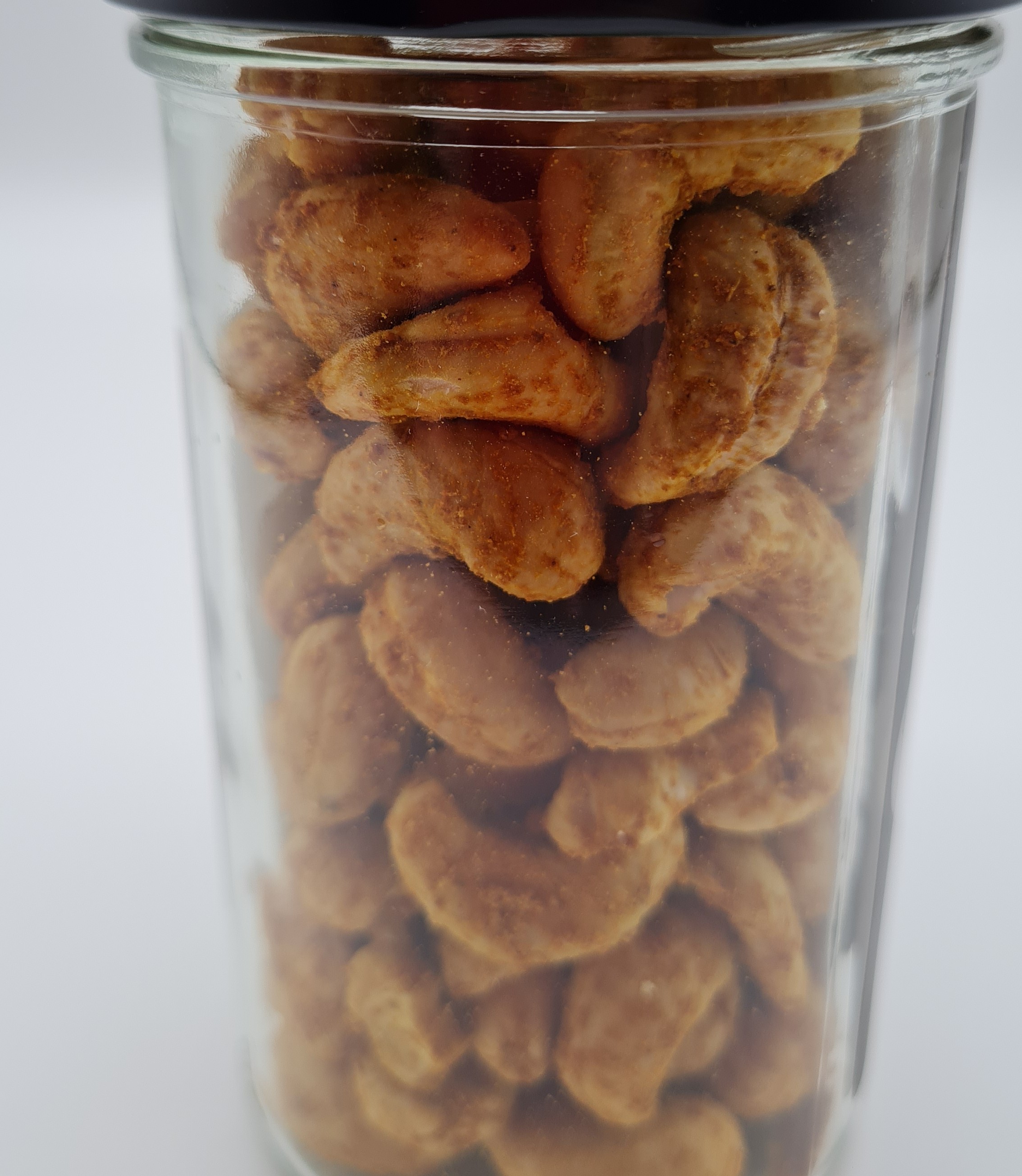 Bio-Cashew-Kerne mit Ingwer, Kurkuma und Limette gewürzt und geröstet