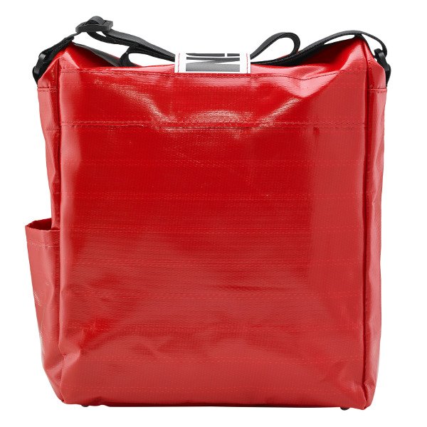 Außenmaterial aus Planenproduktion, Schultergurt aus recycelten Sicherheitsgurten.
